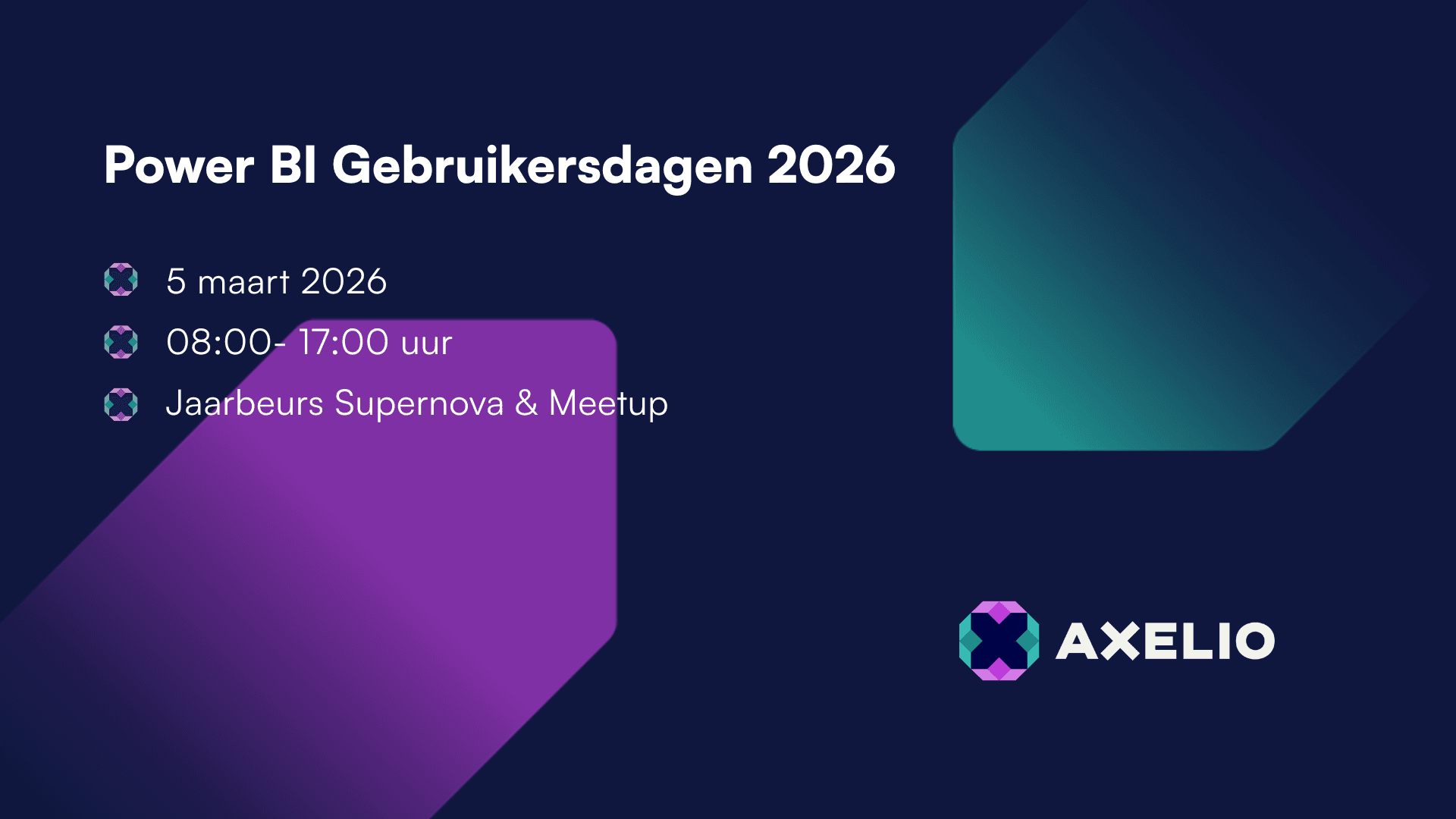 Op vrijdag 6 en zaterdag 7 maart ontmoet je Axelio op één van de partnerstands. Bezoek de beurs en kom in contact met de Power BI experts van Axelio. Zien we je daar?